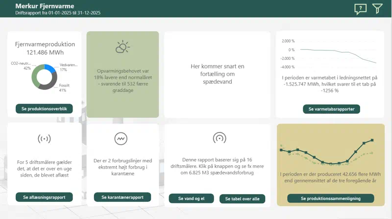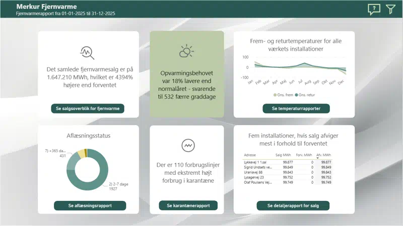 Giver dig en række brugbare nøgletal om fjernvarmesalg, aflæsninger, temperatur og installationer.